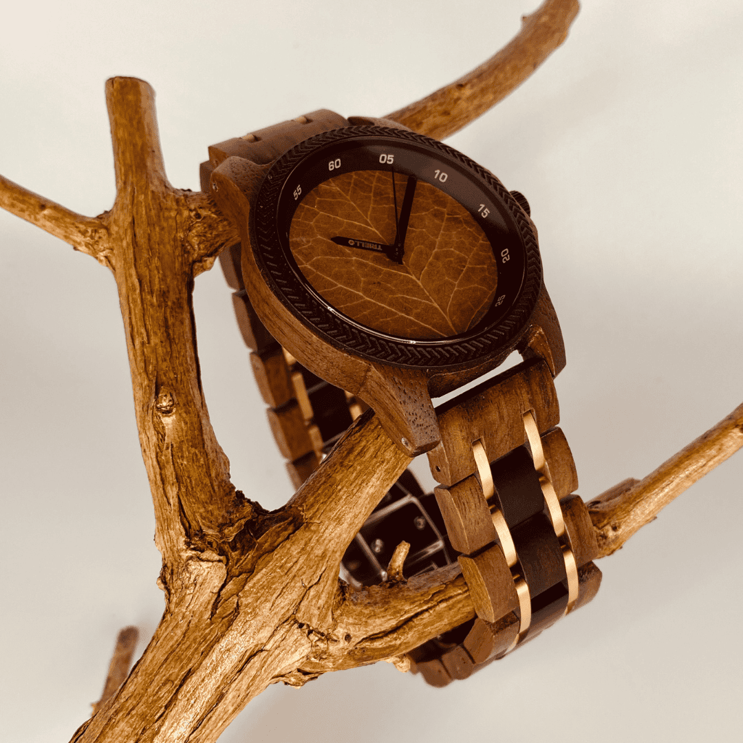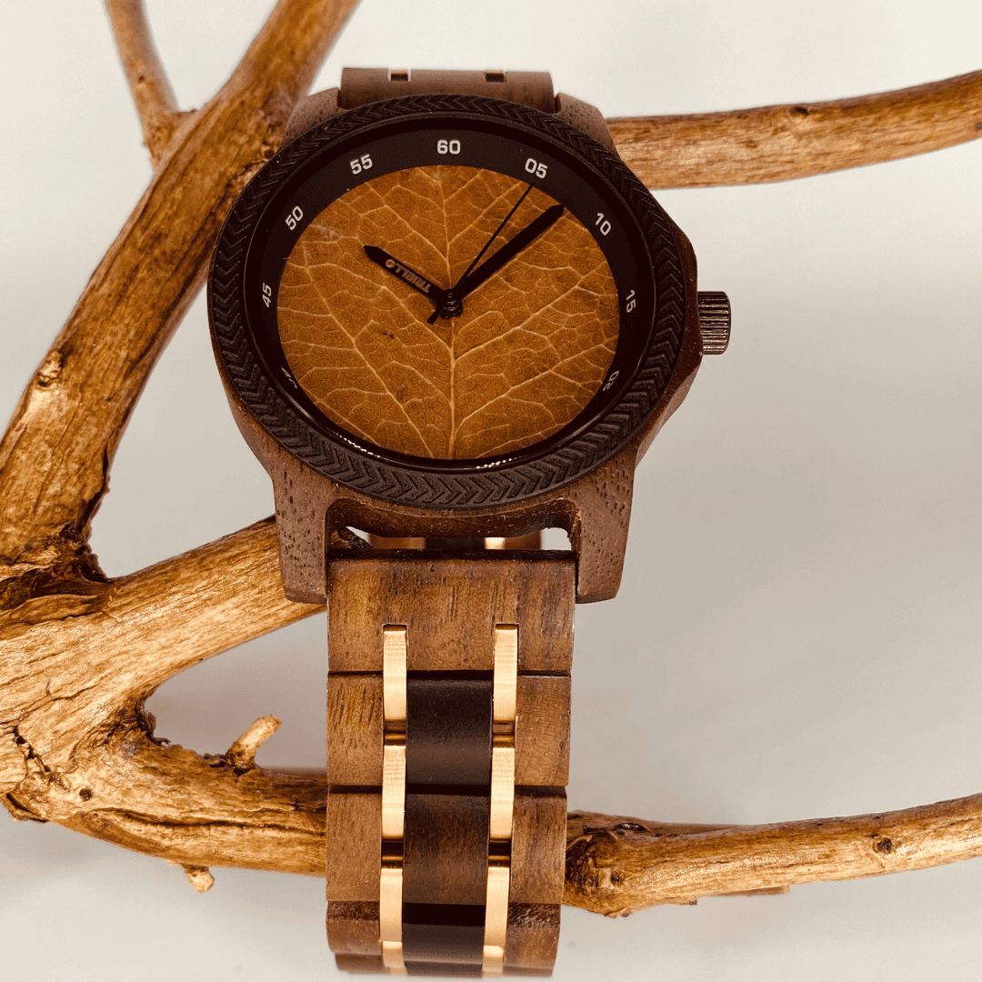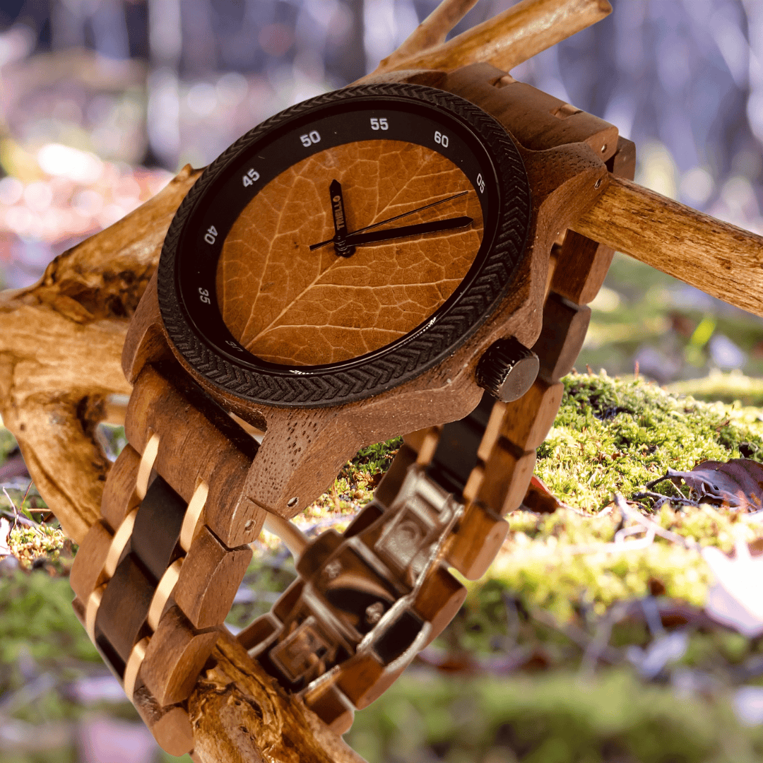 Die Folium (lateinisch für „Blatt“) steht für die perfekte Verbindung von Natur und Charakter. Diese außergewöhnliche Holzuhr für Herren überzeugt durch ihr markantes Design und ihre natürliche Ausstrahlung – ideal für Männer, die Wert auf Stil, Individualität und Nachhaltigkeit legen.