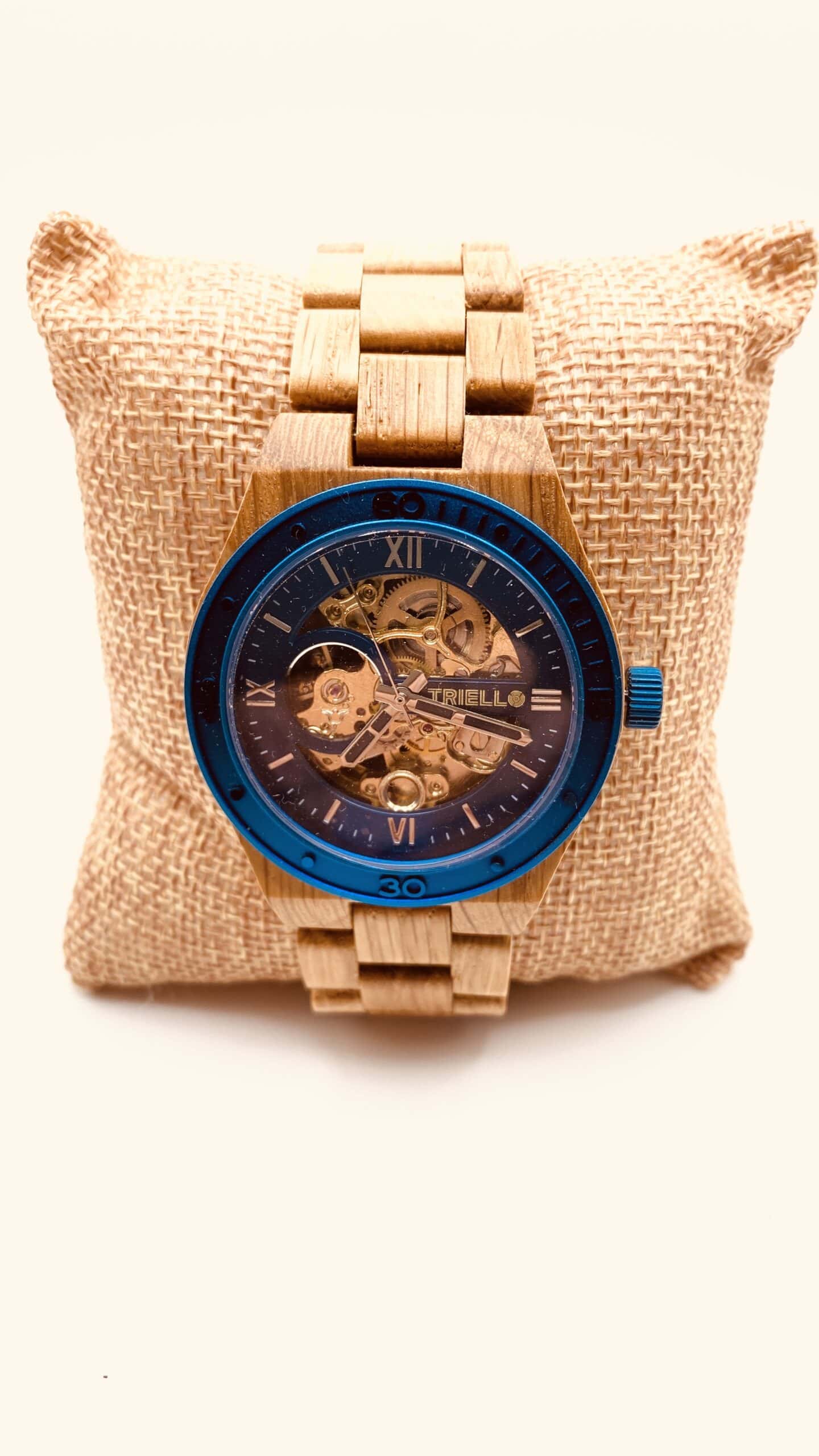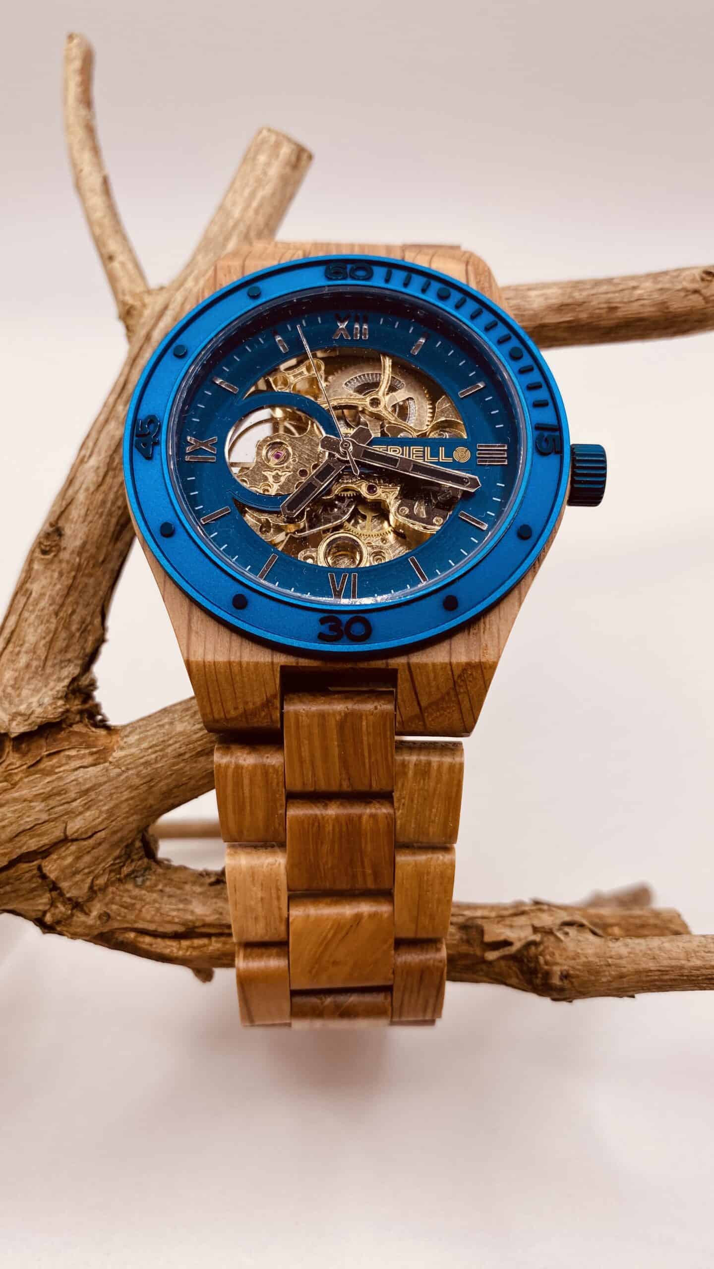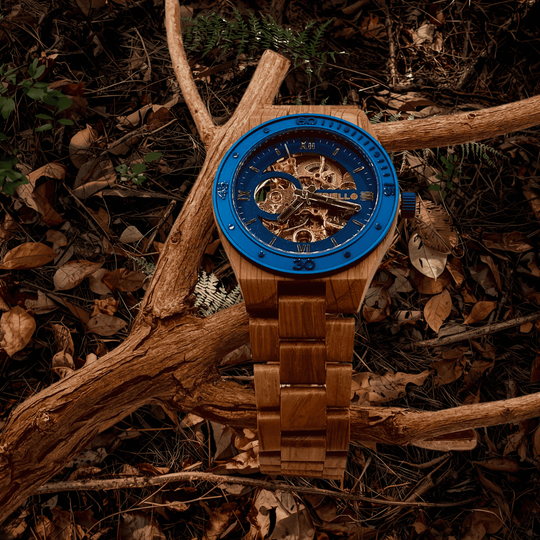 Ein präzises automatisches Uhrwerk sorgt für absolute Zuverlässigkeit, während das Gehäuse aus sorgfältig ausgewähltem Holz jedem Stück eine einzigartige Maserung und Ausstrahlung.