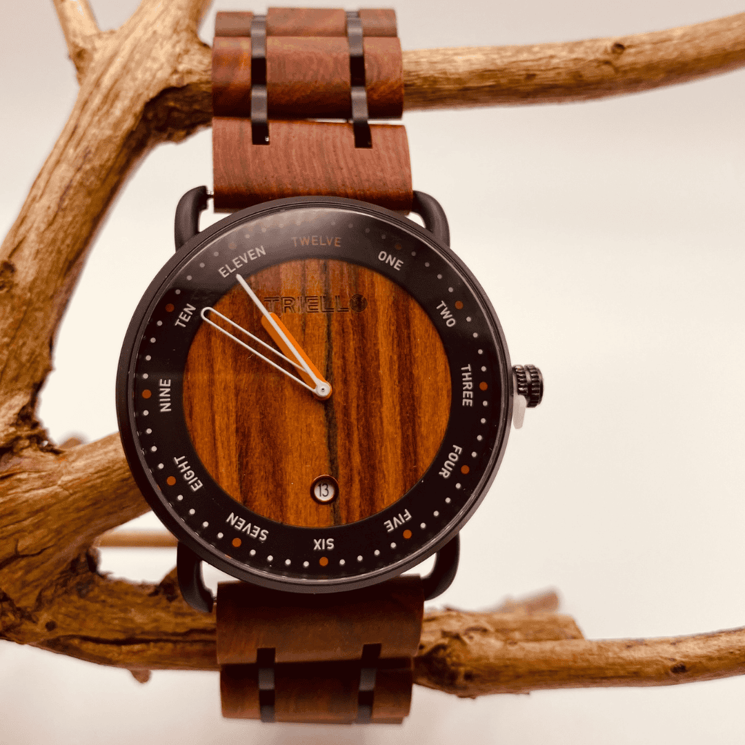 Echtholz-Zifferblatt – jedes Stück ein Unikat