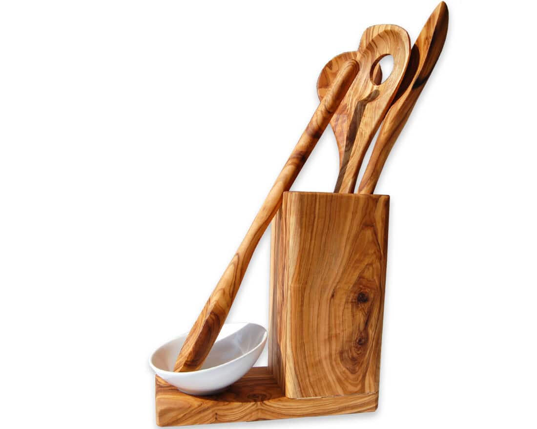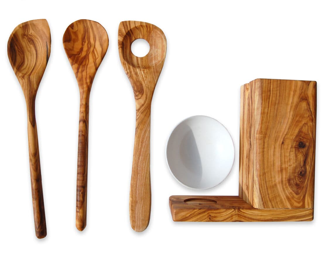 Dieses Küchenset mit 3 verschiedenen Kochlöffeln ist wunderbar griffbereit in der Utensilienbox und gleichzeitig bietet es ein Ablageschälchen bei Benutzung. Alles griffbereit!