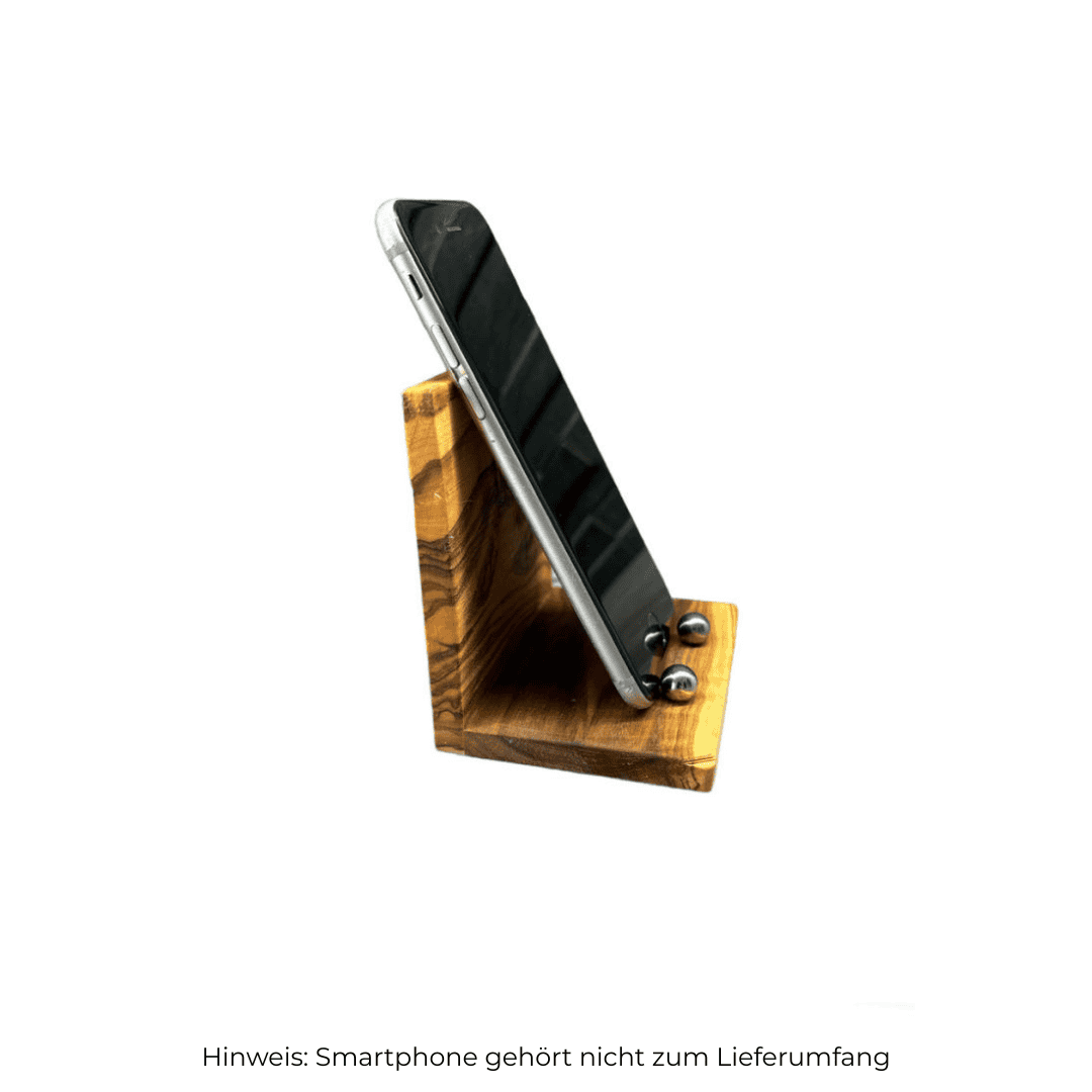 Unser Smartphone-Halter aus edlem Olivenholz ist nicht nur ein praktisches Accessoire, sondern auch ein Highlight auf deinem Schreibtisch.