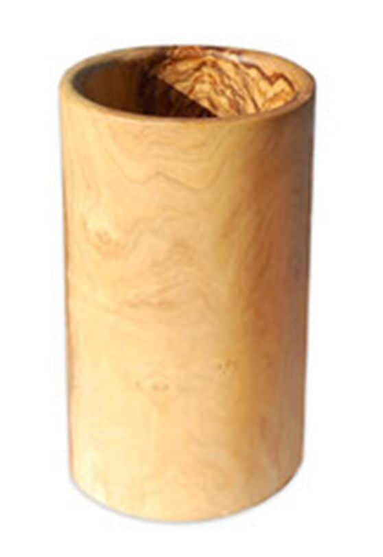 Ein praktischer und schöner Utensilienbecher aus Olivenholz. Richtig gut geeignet für das Kochbesteck wie z.B. Kochlöffel, Pfannenwender, etc.