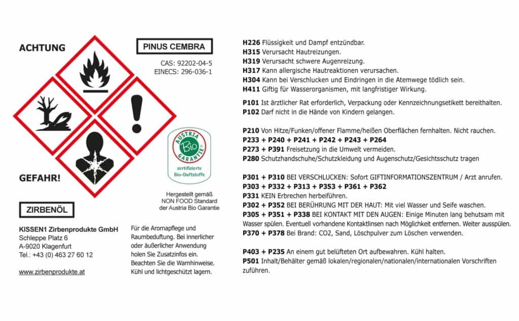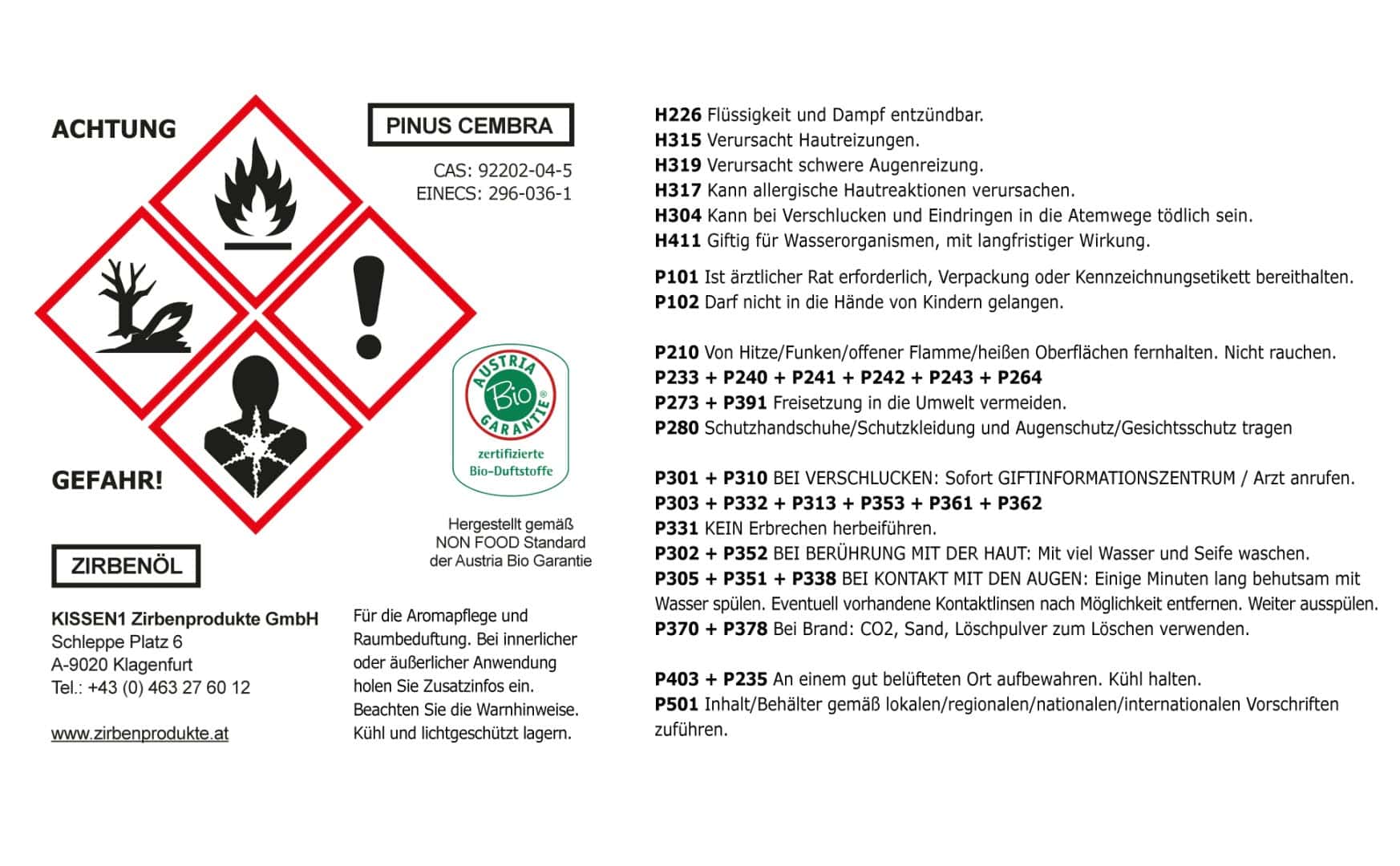 Gesetzlicher Warnhinweis für ätherisches Zirbenöl