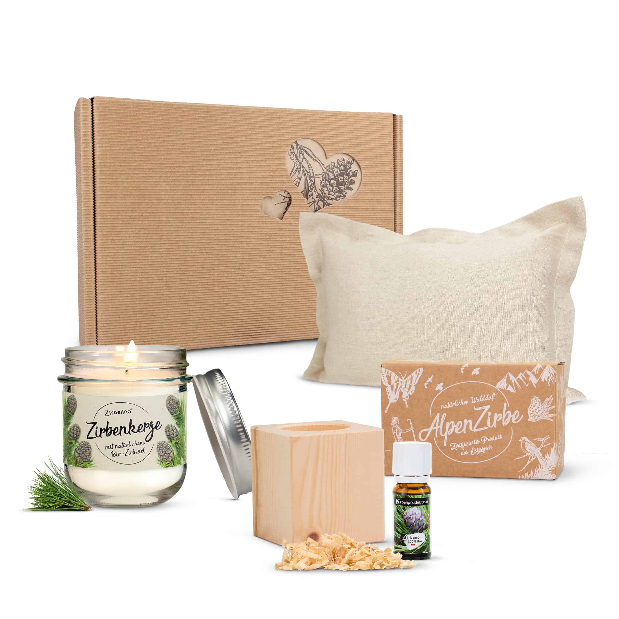 Zirbenprodukte werden traditionell in den Alpen geschätzt – besonders wegen ihres angenehm dezenten, harzigen Duftes. Ob im Wohn- oder Schlafzimmer, am Abend auf Balkon oder Terrasse: Die Zirben-Lieblingsbox Nr. 5 schafft eine natürliche Atmosphäre zum Entspannen und Wohlfühlen.