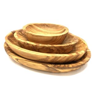 Sehr hübsche ovale Schalen aus natürlichem Olivenholz im 4er Set