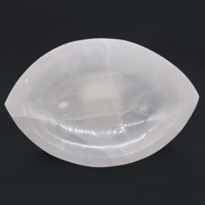 Diese augenförmige Schale aus Selenit begeistert durch ihre natürliche Schönheit und ihre zarte Leuchtkraft.